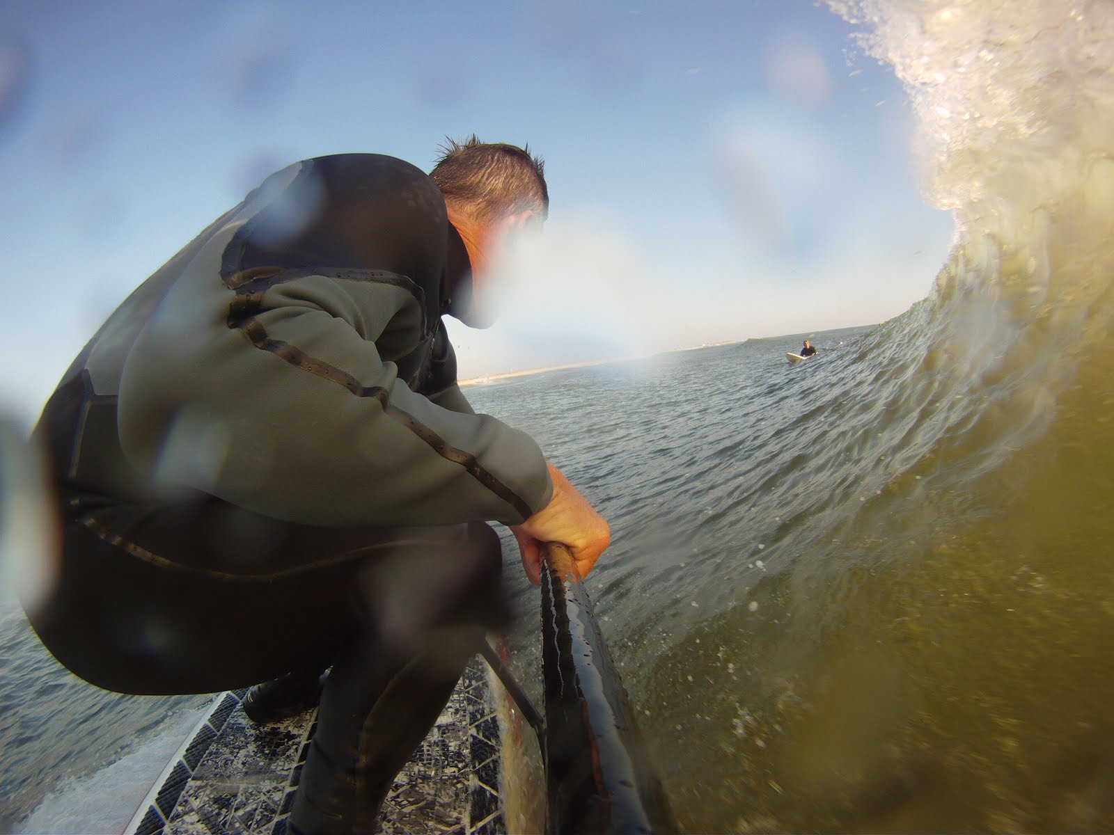 The sun came out , wind laid down and temp was up to 44 degrees . Brad , Todd , Keith and I caught a fun session with no one else around .Took both cameras out , and here is a little montage from the session . So that's why they call it high definition . Pray for surf , warm weather , and have a great New Year , Zog
